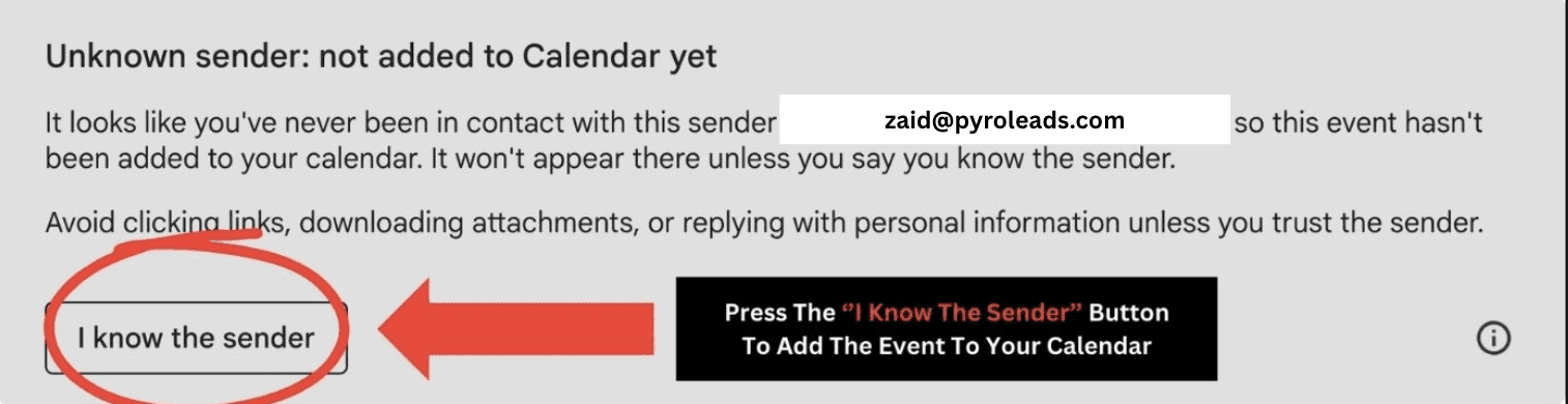 Step #2: Confirm the call on your calendar or click "I know the sender."